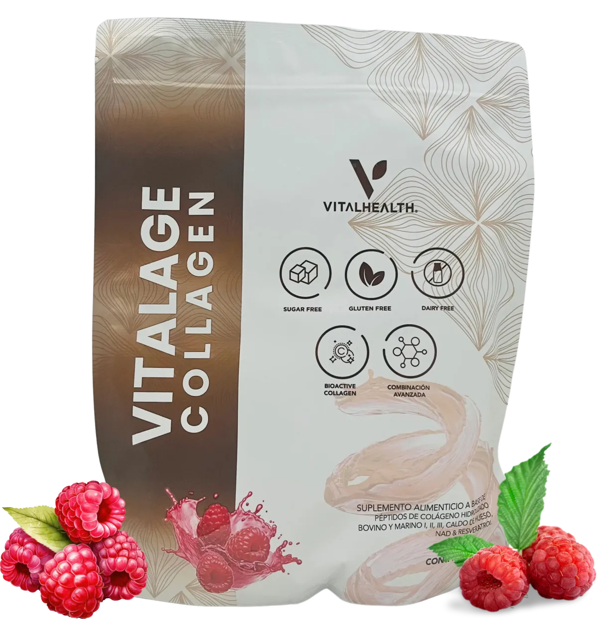 Vitalage Collagen es un suplemento alimenticio y no pretende diagnosticar, tratar, curar o prevenir ninguna enfermedad. Los resultados pueden variar según cada individuo y no están garantizados. Antes de consumir este producto, consulte a su médico o profesional de la salud, especialmente si está embarazada, en período de lactancia, bajo medicación o tiene alguna condición médica preexistente. Este producto no sustituye una dieta equilibrada ni un estilo de vida saludable. La información proporcionada en esta página no constituye asesoramiento médico. El uso inadecuado del producto es responsabilidad exclusiva del consumidor. Mantener fuera del alcance de los niños.